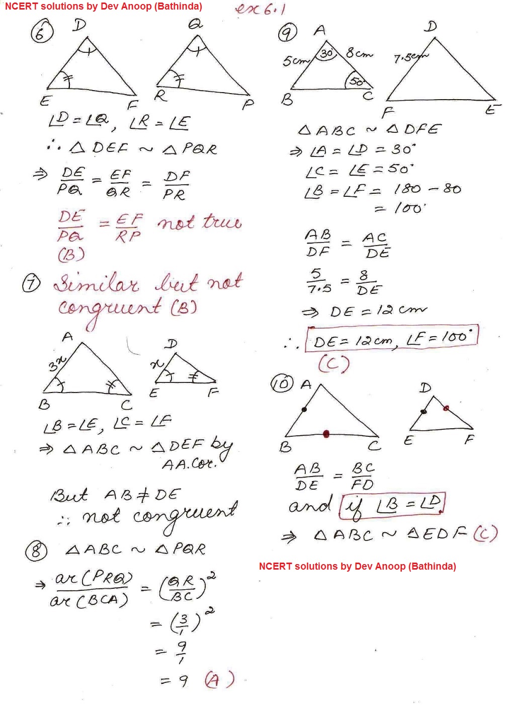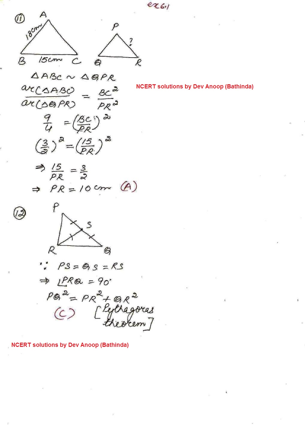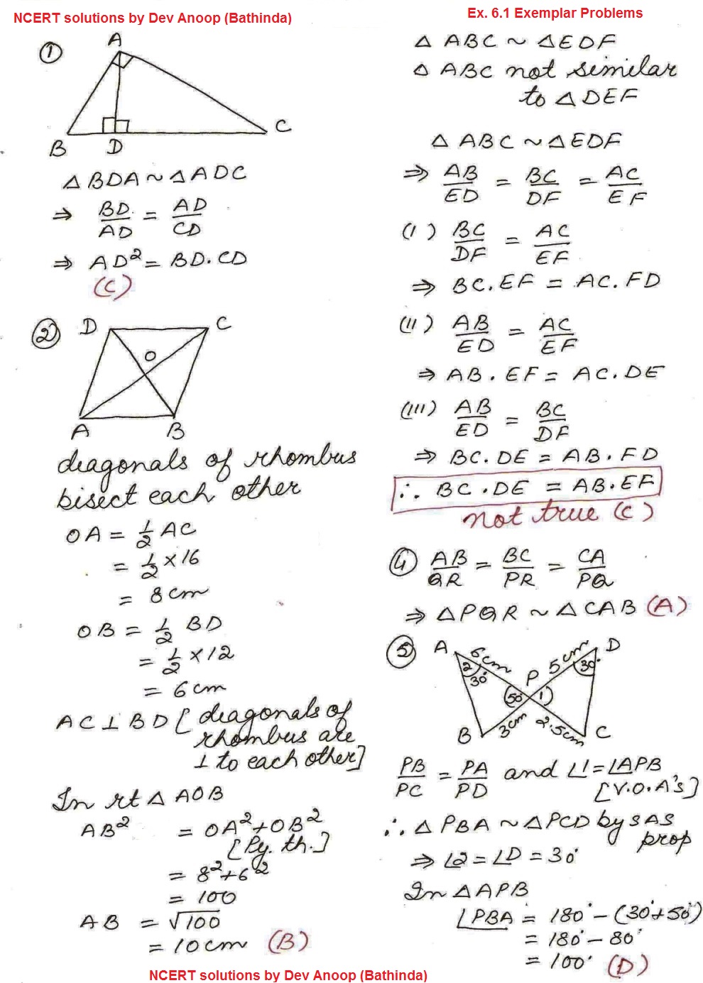 11111111111111| Solutions NCERT Maths Exemplar x Ch.6 Triangles